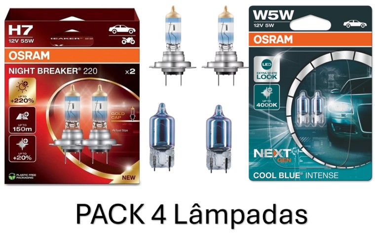 • Osram Night Breaker +220% H7 + Osram Cool Blue Intense NG W5W (4 Lâmpadas)