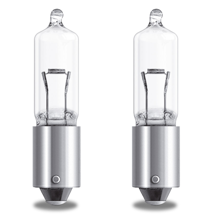 Duas lâmpadas halógenas transparentes com base metálica prateada